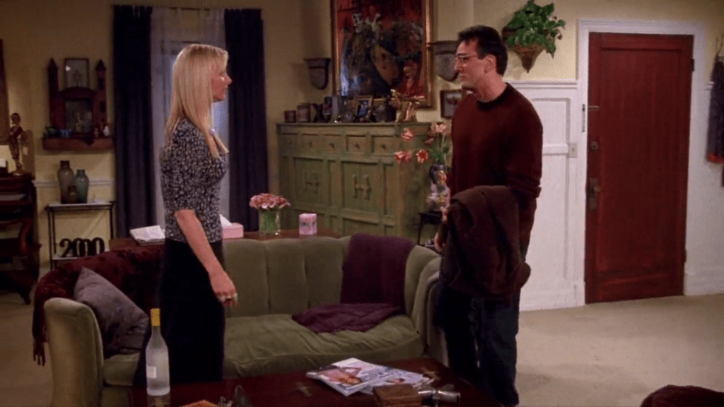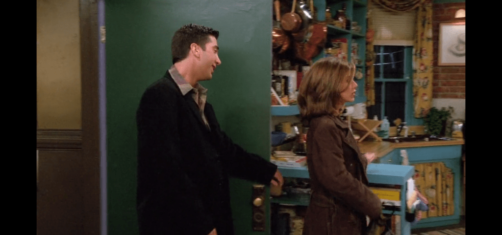 When the setting of the date changes the fashion of the character also changes. When Ross and Rachel go for a movie date they are dressed more casually. It can also be that because they are good friends and they have known each other for a long time they do not feel the need to make a strong impression or express themselves through their fashion too much.
